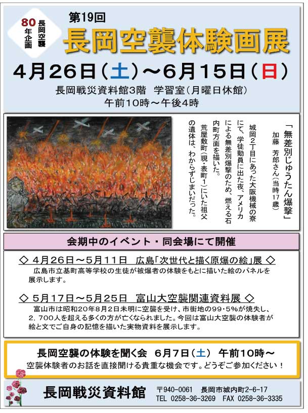 ・会 場 長岡戦災資料館 3階学習室ほか(長岡市城内町2-6-17)