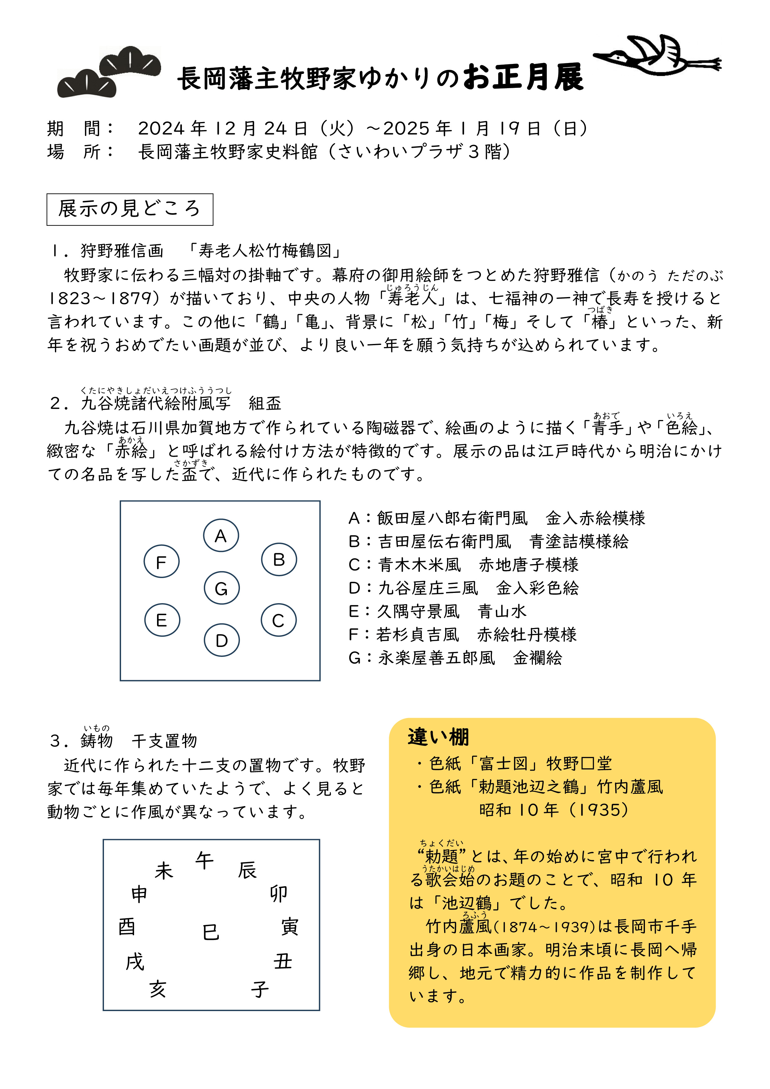 ●1月19日(日)まで。長岡藩主牧野家ゆかりのお正月展
