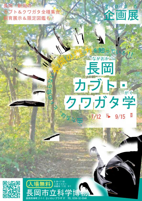 初めて長岡・新潟のカブトムシ・クワガタムシの全17種の展示を行います。入場無料。昆虫の歴史も探訪してみてください。