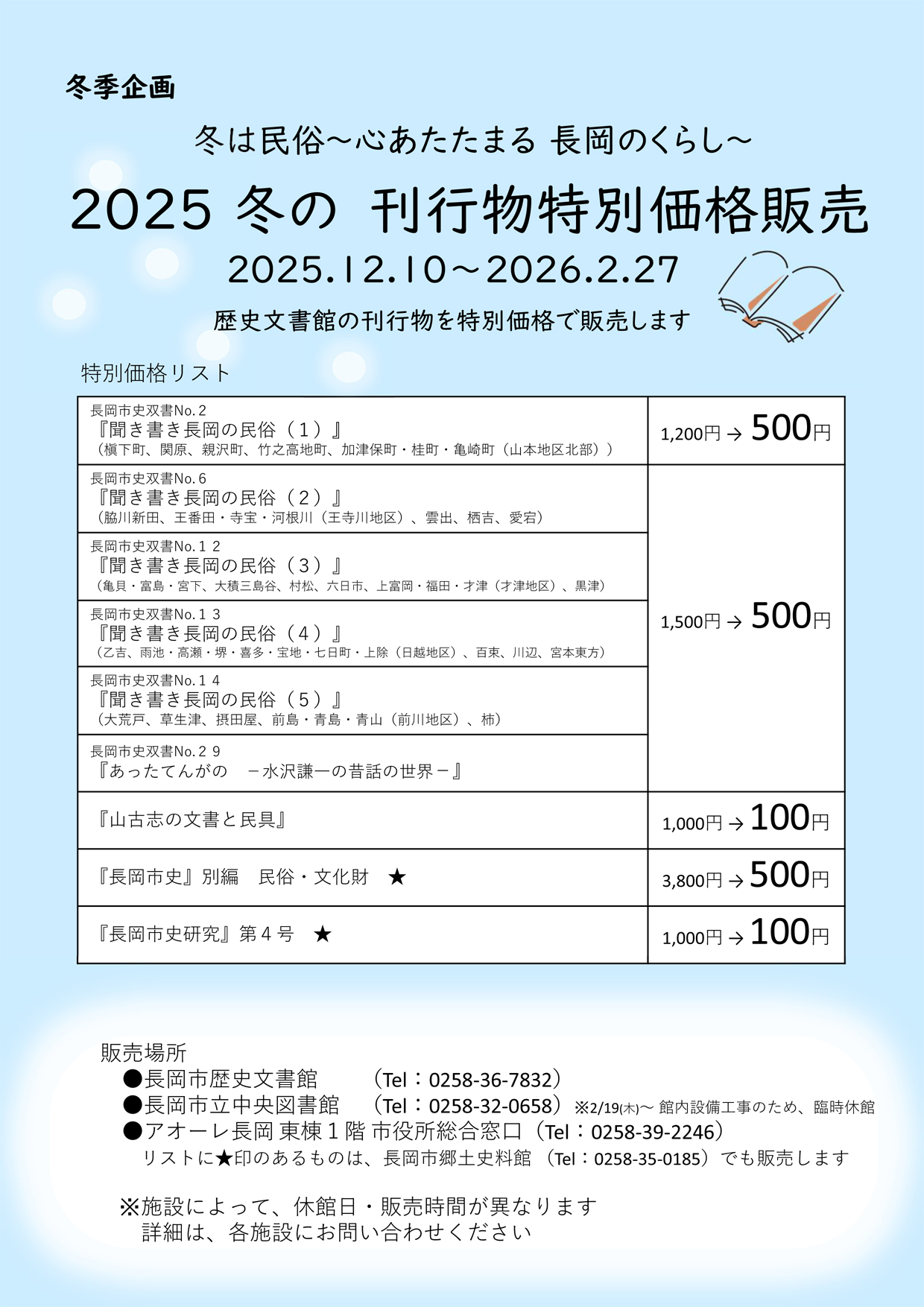 ・会 場 長岡市歴史文書館(長岡市長倉西町458-7 電話36-7832)